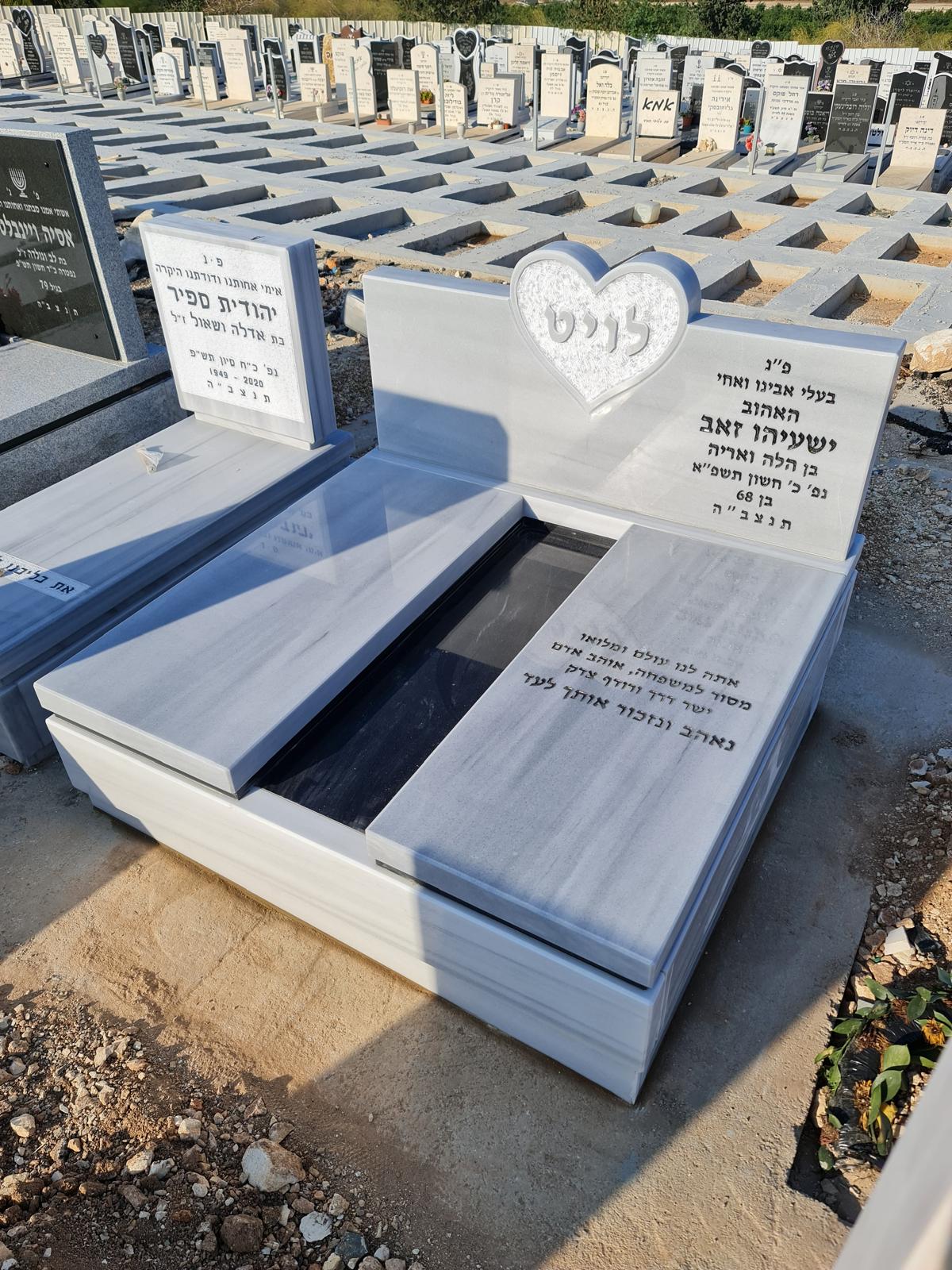עבור קבר משפחתי לשניים, האחד ליד השני בחלקות קבר צמודות (באישור חברת קדישא ניתן להוסיף נפטרים נוספים). המצבה במידות 170/170 ס"מ וגובהה ע"פ ההגבלות).
